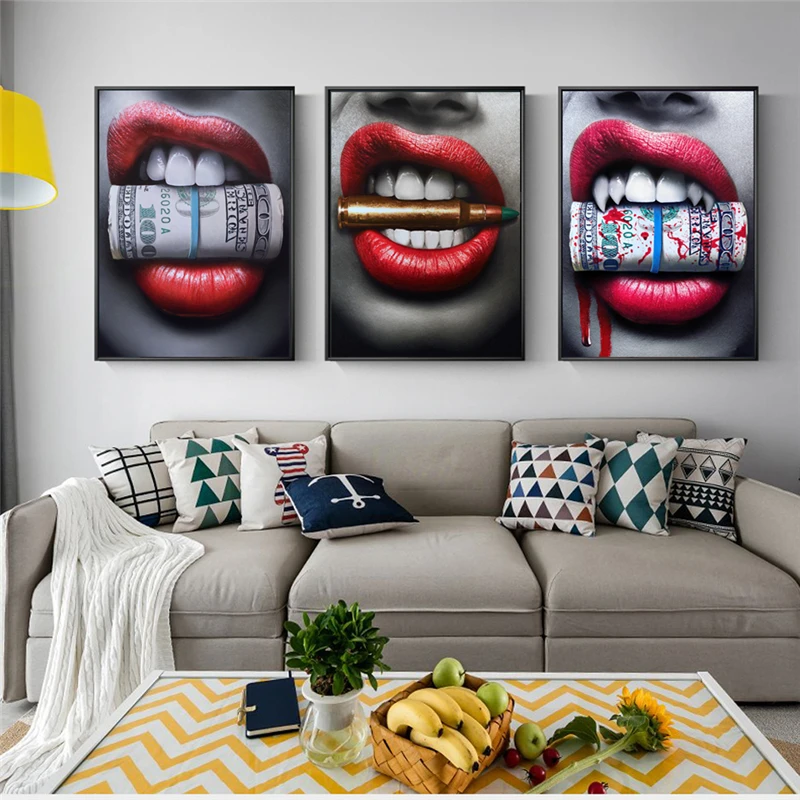 Sexy Bleeding Red Lips Wall Art Canvas Prints Modern Lips With Bullet And Money Canvas Art Paintings Cuadros Pictures Wall Decor Painting Calligraphy Aliexpress